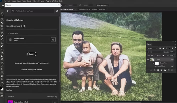在“探索”面板中,导览至“浏览 > 快速动作”,然后选取“为旧相片上色”。