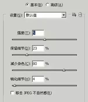执行“滤镜>杂色>减少杂色”命令,如下图所示设置。