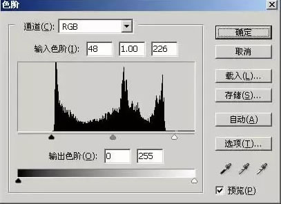 执行“图层>新建调整图层>色阶”命令,设置如下图所示